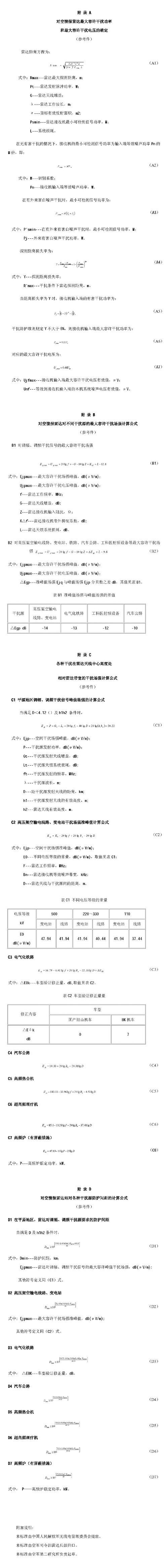 注:a.特殊情況下,按干擾防護(hù)準(zhǔn)則的要求,參照有關(guān)附錄進(jìn)行測算。